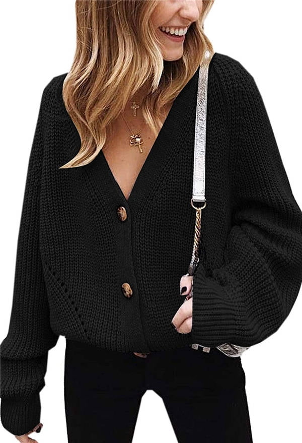 Womens V Neck Button Down Sweater Long